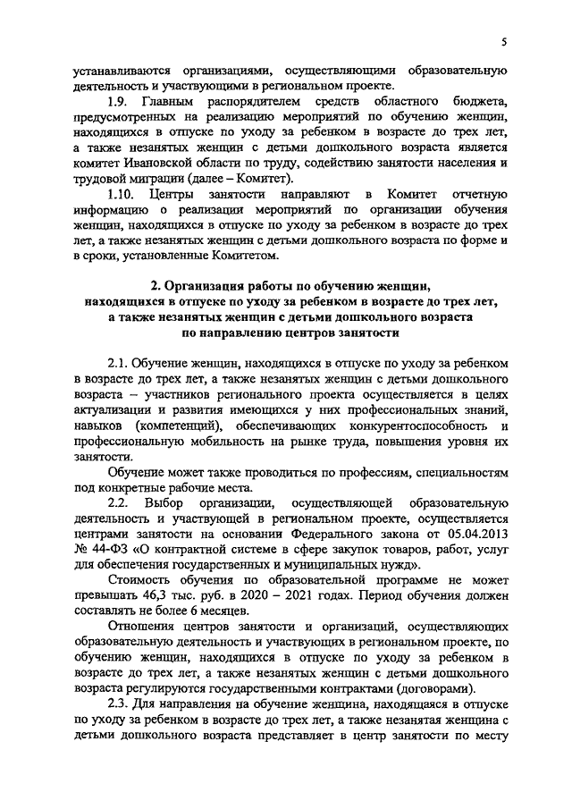 Постановление Правительства Ивановской области от 28.02.2020 N 80-п "Об утверждении Порядка организации и финансирования мероприятий по переобучению и повышению квалификации женщин в период отпуска по уходу за ребенком в возрасте до трех лет, а также женщин, имеющих детей дошкольного возраста, не состоящих в трудовых отношениях и обратившихся в органы службы занятости"