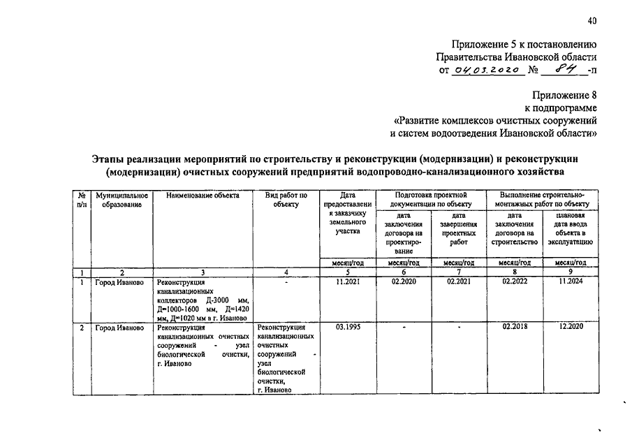 Постановление Правительства Ивановской области от 04.03.2020 N 84-п "О внесении изменений в постановление Правительства Ивановской области от 13.11.2013 N 452-п "Об утверждении государственной программы Ивановской области "Охрана окружающей среды Ивановской области" (вместе с "Порядком предоставления и распределения субсидий бюджетам муниципальных образований Ивановской области на сокращение доли загрязненных сточных вод", "Прогнозом тарифных последствий реализации мероприятий подпрограммы", "Порядком предоставления и распределения субсидий бюджетам муниципальных образований Ивановской области на разработку проектов работ по ликвидации накопленного вреда окружающей среде", "Порядком предоставления и распределения субсидий бюджетам муниципальных образований Ивановской области на ликвидацию наиболее опасных объектов накопленного экологического вреда окружающей среде", "Порядком предоставления и распределения субсидий бюджетам муниципальных образований Ивановской области на ликвидацию (рекультивацию) объектов накопленного экологического вреда, представляющих угрозу реке Волге")