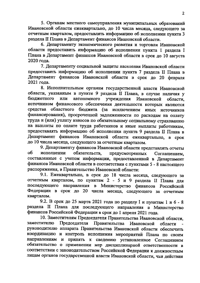Распоряжение Правительства Ивановской области от 10.03.2020 N 20-рп "О реализации Соглашения о мерах по социально-экономическому развитию и оздоровлению государственных финансов Ивановской области" (вместе с "Планом мероприятий по реализации Соглашения о мерах по социально-экономическому развитию и оздоровлению государственных финансов Ивановской области от 29.01.2020 N 01-01-06/06-40")