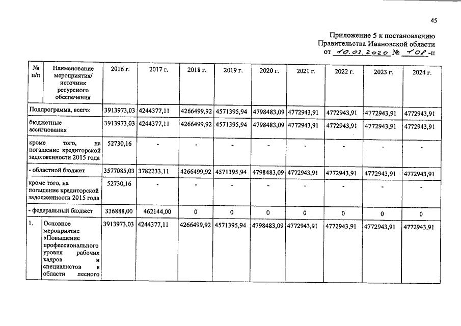 Постановление Правительства Ивановской области от 10.03.2020 N 108-п "О внесении изменений в постановление Правительства Ивановской области от 13.11.2013 N 448-п "Об утверждении государственной программы Ивановской области "Развитие лесного хозяйства Ивановской области"