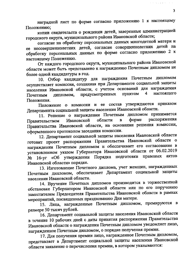 Постановление Правительства Ивановской области от 10.03.2020 N 107-п "О Почетном дипломе многодетной матери Ивановской области" (вместе с "Положением о Почетном дипломе многодетной матери Ивановской области")