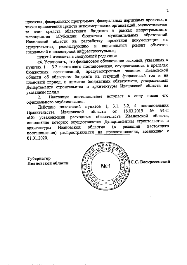 Постановление Правительства Ивановской области от 10.03.2020 N 102-п "О внесении изменений в постановление Правительства Ивановской области от 18.03.2019 N 91-п "Об установлении расходных обязательств Ивановской области, исполнение которых осуществляется Департаментом строительства и архитектуры Ивановской области"