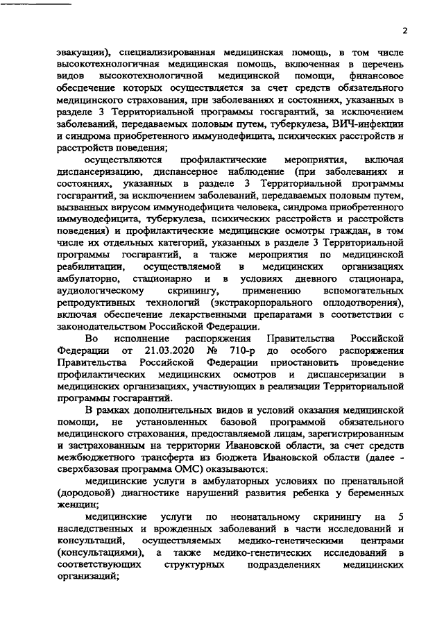 Постановление Правительства Ивановской области от 30.03.2020 N 133-п "О внесении изменений в постановление Правительства Ивановской области от 31.12.2019 N 560-п "Об утверждении Территориальной программы государственных гарантий бесплатного оказания гражданам медицинской помощи на территории Ивановской области на 2020 год и на плановый период 2021 и 2022 годов"