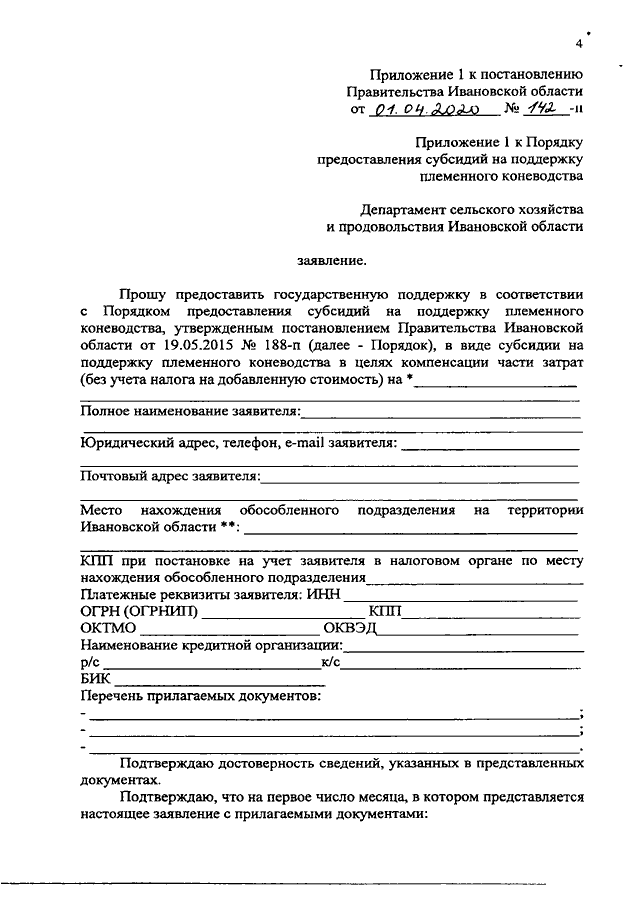 Постановление Правительства Ивановской области от 01.04.2020 N 142-п "О внесении изменений в постановление Правительства Ивановской области от 19.05.2015 N 188-п "Об утверждении Порядка предоставления субсидий на поддержку племенного коневодства"