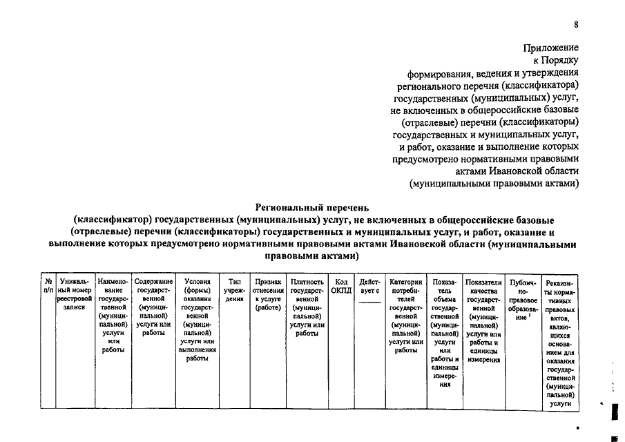 Постановление Правительства Ивановской области от 01.04.2020 N 160-п "О внесении изменения в постановление Правительства Ивановской области от 15.01.2018 N 6-п "Об отдельных вопросах формирования государственного (муниципального) задания на оказание государственных (муниципальных) услуг (выполнение работ)" (вместе с "Порядком формирования, ведения и утверждения регионального перечня (классификатора) государственных (муниципальных) услуг, не включенных в общероссийские базовые (отраслевые) перечни (классификаторы) государственных и муниципальных услуг, и работ, оказание и выполнение которых предусмотрено нормативными правовыми актами Ивановской области (муниципальными правовыми актами)")