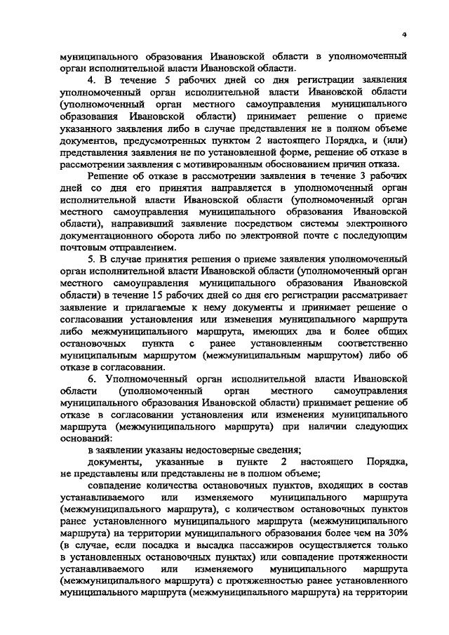 Постановление Правительства Ивановской области от 01.04.2020 N 159-п "О Порядке согласования между уполномоченным органом исполнительной власти Ивановской области и уполномоченным органом местного самоуправления муниципального образования Ивановской области установления или изменения муниципального маршрута регулярных перевозок либо межмуниципального маршрута регулярных перевозок, имеющих два и более общих остановочных пункта с ранее установленным соответственно муниципальным маршрутом регулярных перевозок, межмуниципальным маршрутом регулярных перевозок на территории Ивановской области"