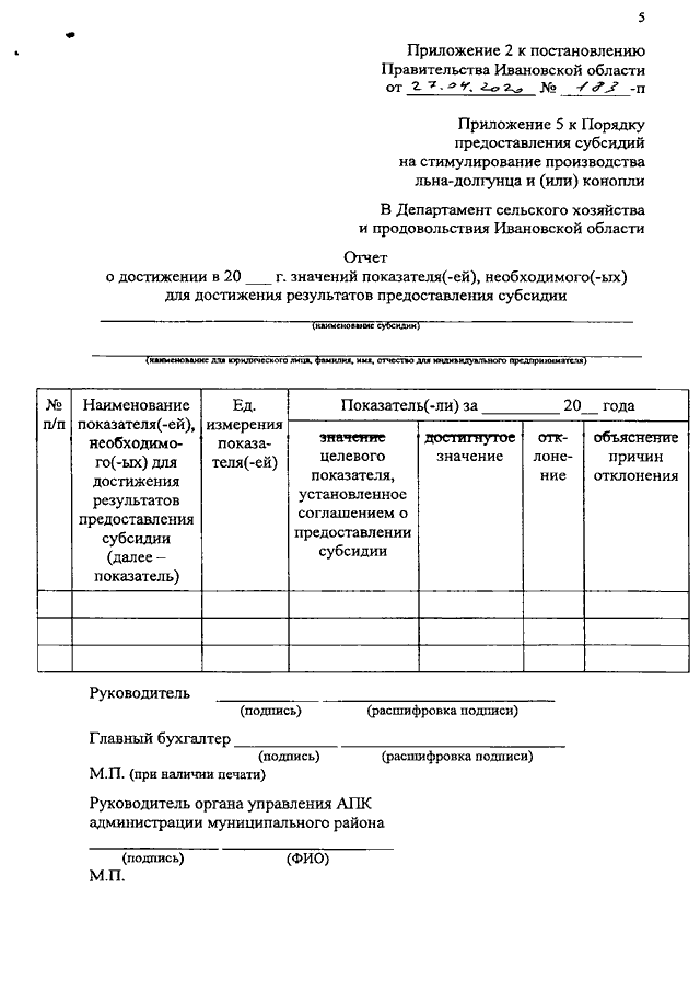 Постановление Правительства Ивановской области от 27.04.2020 N 183-п "О внесении изменений в постановление Правительства Ивановской области от 16.12.2019 N 518-п "Об утверждении Порядка предоставления субсидий на стимулирование производства льна-долгунца и (или) конопли"