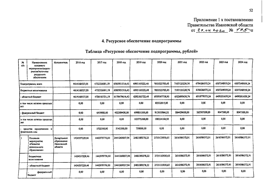 Постановление Правительства Ивановской области от 27.04.2020 N 175-п "О внесении изменений в постановление Правительства Ивановской области от 13.11.2013 N 450-п "Об утверждении государственной программы "Развитие образования Ивановской области" (вместе с "Порядком предоставления и распределения субсидий бюджетам муниципальных образований Ивановской области на строительство объектов общего образования", "Порядком предоставления и распределения субсидий бюджетам муниципальных районов и городских округов Ивановской области на создание в общеобразовательных организациях Ивановской области, расположенных в сельской местности и малых городах, условий для занятий физической культурой и спортом", "Порядком предоставления и распределения субсидий бюджетам муниципальных образований Ивановской области на реализацию мероприятий по созданию дополнительных мест для детей в возрасте от 1,5 до 3 лет в образовательных организациях, осуществляющих образовательную деятельность по образовательным программам дошкольного образования", "Порядком предоставления и распределения субсидий бюджетам муниципальных районов и городских округов Ивановской области на реализацию мероприятий по модернизации муниципальных детских школ искусств по видам искусств")