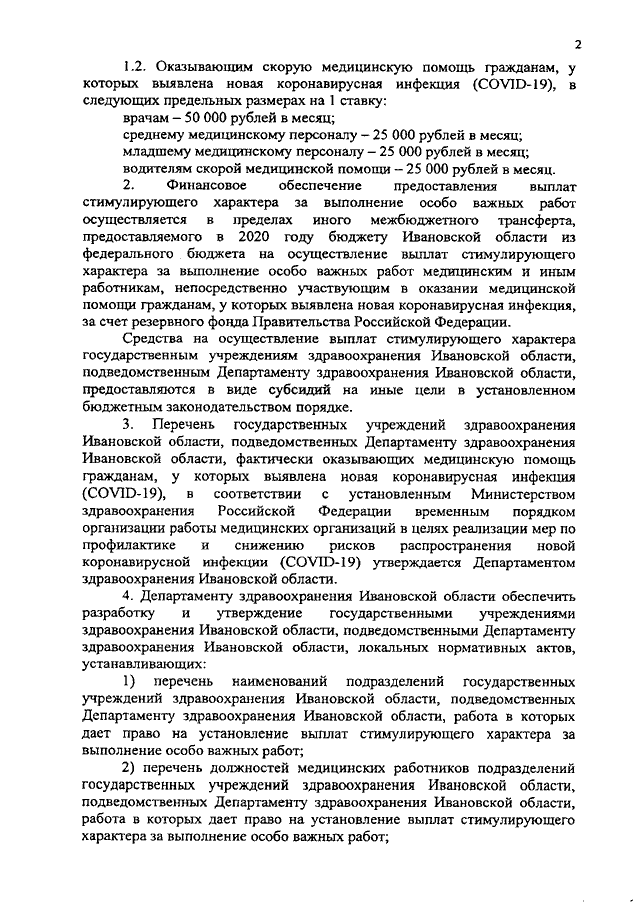 Постановление Правительства Ивановской области от 27.04.2020 N 199-п "Об установлении в 2020 году выплат стимулирующего характера за выполнение особо важных работ медицинским и иным работникам, непосредственно участвующим в оказании медицинской помощи гражданам, у которых выявлена новая коронавирусная инфекция (COVID-19)"