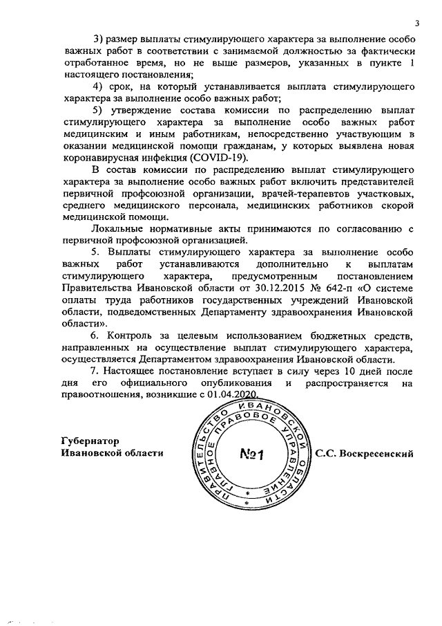 Постановление Правительства Ивановской области от 27.04.2020 N 199-п "Об установлении в 2020 году выплат стимулирующего характера за выполнение особо важных работ медицинским и иным работникам, непосредственно участвующим в оказании медицинской помощи гражданам, у которых выявлена новая коронавирусная инфекция (COVID-19)"