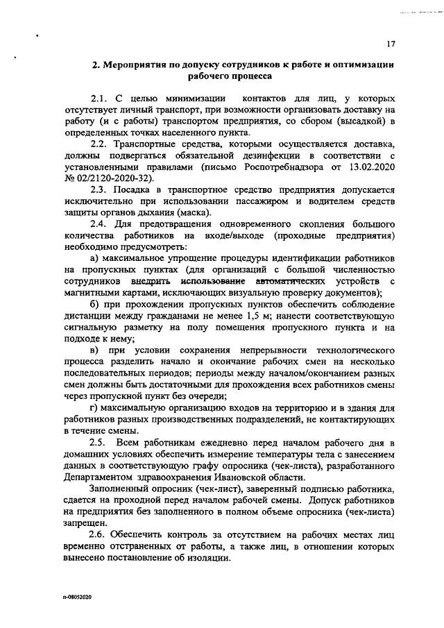 Постановление Правительства Ивановской области от 08.05.2020 N 209-п "Об утверждении регламентов по проведению профилактических мероприятий и дезинфекции в целях недопущения распространения новой коронавирусной инфекции (COVID-2019) на территории Ивановской области" (вместе с "Регламентом порядка работы предприятий промышленности в целях недопущения распространения новой коронавирусной инфекции (COVID-2019) на территории Ивановской области", "Регламентом порядка работы предприятий пищевой промышленности в целях недопущения распространения новой коронавирусной инфекции (COVID-2019) на территории Ивановской области", "Регламентом порядка работы предприятий текстильной промышленности в целях недопущения распространения новой коронавирусной инфекции (COVID-2019) на территории Ивановской области", "Регламентом порядка работы швейных предприятий в целях недопущения распространения новой коронавирусной инфекции (COVID-2019) на территории Ивановской области", "Регламентом порядка работы и предоставления услуг по перевозке пассажиров и багажа автомобильным транспортом и городским наземным электрическим транспортом в целях недопущения распространения новой коронавирусной инфекции (COVID-2019) на территории Ивановской области", "Регламентом порядка работы и предоставления услуг организациями, эксплуатирующими автозаправочные станции и комплексы, в целях недопущения распространения новой коронавирусной инфекции (COVID-2019) на территории Ивановской области", "Регламентом порядка работы и предоставления услуг по перевозке пассажиров и багажа легковым такси в целях недопущения распространения новой коронавирусной инфекции (COVID-2019) на территории Ивановской области", "Регламентом порядка работы предприятий сферы услуг в целях недопущения распространения новой коронавирусной инфекции (COVID-2019) на территории Ивановской области", "Регламентом порядка работы образовательных организаций, реализующих основные образовательные программы дошкольного образования, в целях недопущения распространения новой коронавирусной инфекции (COVID-19) на территории Ивановской области", "Регламентом порядка работы по проведению профилактических мероприятий и дезинфекции организаций, оказывающих парикмахерские и косметические услуги, в целях недопущения распространения новой коронавирусной инфекции (COVID-2019) на территории Ивановской области", "Регламентом порядка работы объектов розничной торговли продовольственных и непродовольственных товаров в целях недопущения распространения новой коронавирусной инфекции (COVID-2019) на территории Ивановской области", "Регламентом порядка работы многофункциональных центров предоставления государственных и муниципальных услуг (МФЦ) в целях недопущения распространения новой коронавирусной инфекции (COVID-2019) на территории Ивановской области")