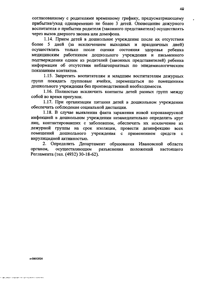 Постановление Правительства Ивановской области от 08.05.2020 N 209-п "Об утверждении регламентов по проведению профилактических мероприятий и дезинфекции в целях недопущения распространения новой коронавирусной инфекции (COVID-2019) на территории Ивановской области" (вместе с "Регламентом порядка работы предприятий промышленности в целях недопущения распространения новой коронавирусной инфекции (COVID-2019) на территории Ивановской области", "Регламентом порядка работы предприятий пищевой промышленности в целях недопущения распространения новой коронавирусной инфекции (COVID-2019) на территории Ивановской области", "Регламентом порядка работы предприятий текстильной промышленности в целях недопущения распространения новой коронавирусной инфекции (COVID-2019) на территории Ивановской области", "Регламентом порядка работы швейных предприятий в целях недопущения распространения новой коронавирусной инфекции (COVID-2019) на территории Ивановской области", "Регламентом порядка работы и предоставления услуг по перевозке пассажиров и багажа автомобильным транспортом и городским наземным электрическим транспортом в целях недопущения распространения новой коронавирусной инфекции (COVID-2019) на территории Ивановской области", "Регламентом порядка работы и предоставления услуг организациями, эксплуатирующими автозаправочные станции и комплексы, в целях недопущения распространения новой коронавирусной инфекции (COVID-2019) на территории Ивановской области", "Регламентом порядка работы и предоставления услуг по перевозке пассажиров и багажа легковым такси в целях недопущения распространения новой коронавирусной инфекции (COVID-2019) на территории Ивановской области", "Регламентом порядка работы предприятий сферы услуг в целях недопущения распространения новой коронавирусной инфекции (COVID-2019) на территории Ивановской области", "Регламентом порядка работы образовательных организаций, реализующих основные образовательные программы дошкольного образования, в целях недопущения распространения новой коронавирусной инфекции (COVID-19) на территории Ивановской области", "Регламентом порядка работы по проведению профилактических мероприятий и дезинфекции организаций, оказывающих парикмахерские и косметические услуги, в целях недопущения распространения новой коронавирусной инфекции (COVID-2019) на территории Ивановской области", "Регламентом порядка работы объектов розничной торговли продовольственных и непродовольственных товаров в целях недопущения распространения новой коронавирусной инфекции (COVID-2019) на территории Ивановской области", "Регламентом порядка работы многофункциональных центров предоставления государственных и муниципальных услуг (МФЦ) в целях недопущения распространения новой коронавирусной инфекции (COVID-2019) на территории Ивановской области")