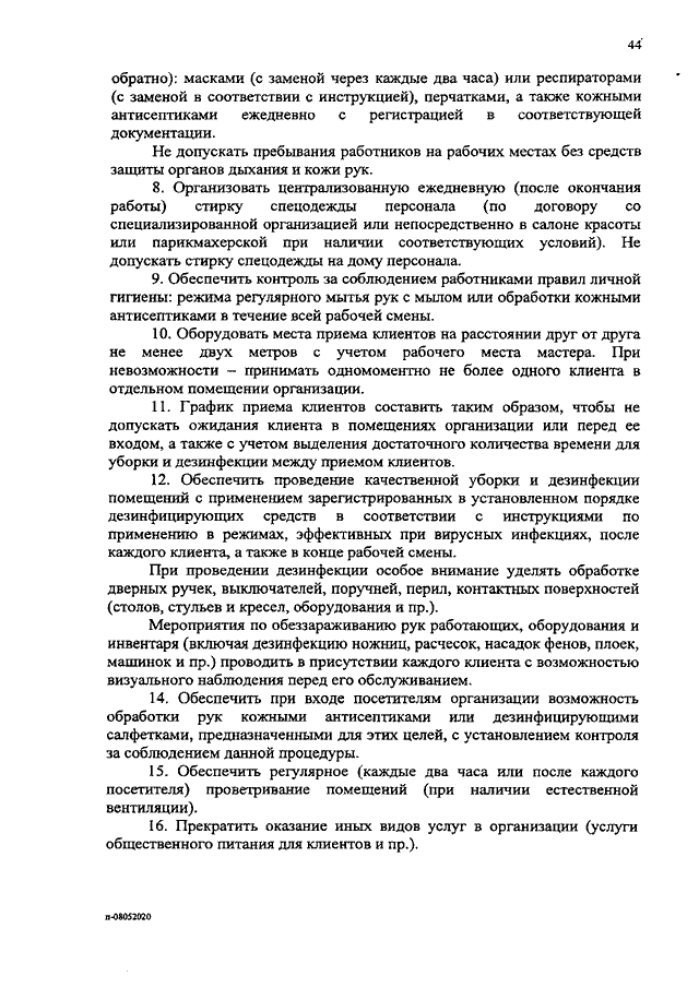 Постановление Правительства Ивановской области от 08.05.2020 N 209-п "Об утверждении регламентов по проведению профилактических мероприятий и дезинфекции в целях недопущения распространения новой коронавирусной инфекции (COVID-2019) на территории Ивановской области" (вместе с "Регламентом порядка работы предприятий промышленности в целях недопущения распространения новой коронавирусной инфекции (COVID-2019) на территории Ивановской области", "Регламентом порядка работы предприятий пищевой промышленности в целях недопущения распространения новой коронавирусной инфекции (COVID-2019) на территории Ивановской области", "Регламентом порядка работы предприятий текстильной промышленности в целях недопущения распространения новой коронавирусной инфекции (COVID-2019) на территории Ивановской области", "Регламентом порядка работы швейных предприятий в целях недопущения распространения новой коронавирусной инфекции (COVID-2019) на территории Ивановской области", "Регламентом порядка работы и предоставления услуг по перевозке пассажиров и багажа автомобильным транспортом и городским наземным электрическим транспортом в целях недопущения распространения новой коронавирусной инфекции (COVID-2019) на территории Ивановской области", "Регламентом порядка работы и предоставления услуг организациями, эксплуатирующими автозаправочные станции и комплексы, в целях недопущения распространения новой коронавирусной инфекции (COVID-2019) на территории Ивановской области", "Регламентом порядка работы и предоставления услуг по перевозке пассажиров и багажа легковым такси в целях недопущения распространения новой коронавирусной инфекции (COVID-2019) на территории Ивановской области", "Регламентом порядка работы предприятий сферы услуг в целях недопущения распространения новой коронавирусной инфекции (COVID-2019) на территории Ивановской области", "Регламентом порядка работы образовательных организаций, реализующих основные образовательные программы дошкольного образования, в целях недопущения распространения новой коронавирусной инфекции (COVID-19) на территории Ивановской области", "Регламентом порядка работы по проведению профилактических мероприятий и дезинфекции организаций, оказывающих парикмахерские и косметические услуги, в целях недопущения распространения новой коронавирусной инфекции (COVID-2019) на территории Ивановской области", "Регламентом порядка работы объектов розничной торговли продовольственных и непродовольственных товаров в целях недопущения распространения новой коронавирусной инфекции (COVID-2019) на территории Ивановской области", "Регламентом порядка работы многофункциональных центров предоставления государственных и муниципальных услуг (МФЦ) в целях недопущения распространения новой коронавирусной инфекции (COVID-2019) на территории Ивановской области")