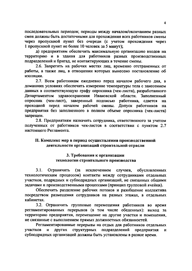 Постановление Правительства Ивановской области от 15.05.2020 N 220-п "О внесении изменения в постановление Правительства Ивановской области от 08.05.2020 N 209-п "Об утверждении регламентов по проведению профилактических мероприятий и дезинфекции в целях недопущения распространения новой коронавирусной инфекции (COVID-2019) на территории Ивановской области" (вместе с "Регламентом порядка работы предприятий строительной отрасли в целях недопущения распространения новой коронавирусной инфекции (COVID-2019) на территории Ивановской области")