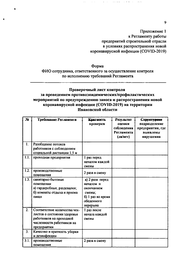 Постановление Правительства Ивановской области от 15.05.2020 N 220-п "О внесении изменения в постановление Правительства Ивановской области от 08.05.2020 N 209-п "Об утверждении регламентов по проведению профилактических мероприятий и дезинфекции в целях недопущения распространения новой коронавирусной инфекции (COVID-2019) на территории Ивановской области" (вместе с "Регламентом порядка работы предприятий строительной отрасли в целях недопущения распространения новой коронавирусной инфекции (COVID-2019) на территории Ивановской области")
