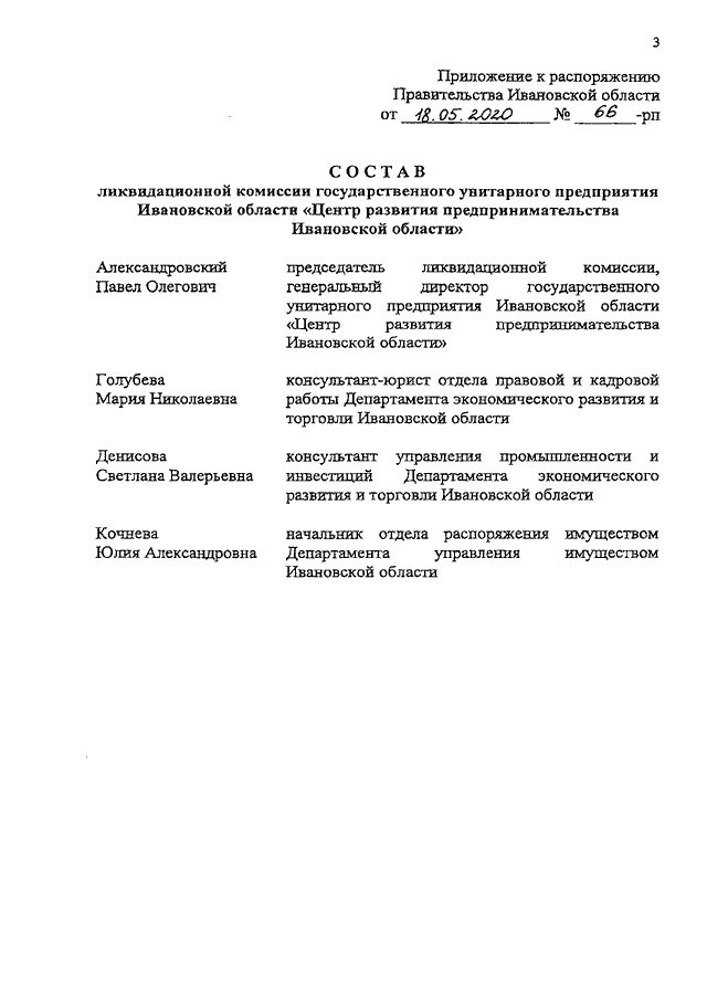 Распоряжение Правительства Ивановской области от 18.05.2020 N 66-рп "О ликвидации государственного унитарного предприятия Ивановской области "Центр развития предпринимательства Ивановской области"