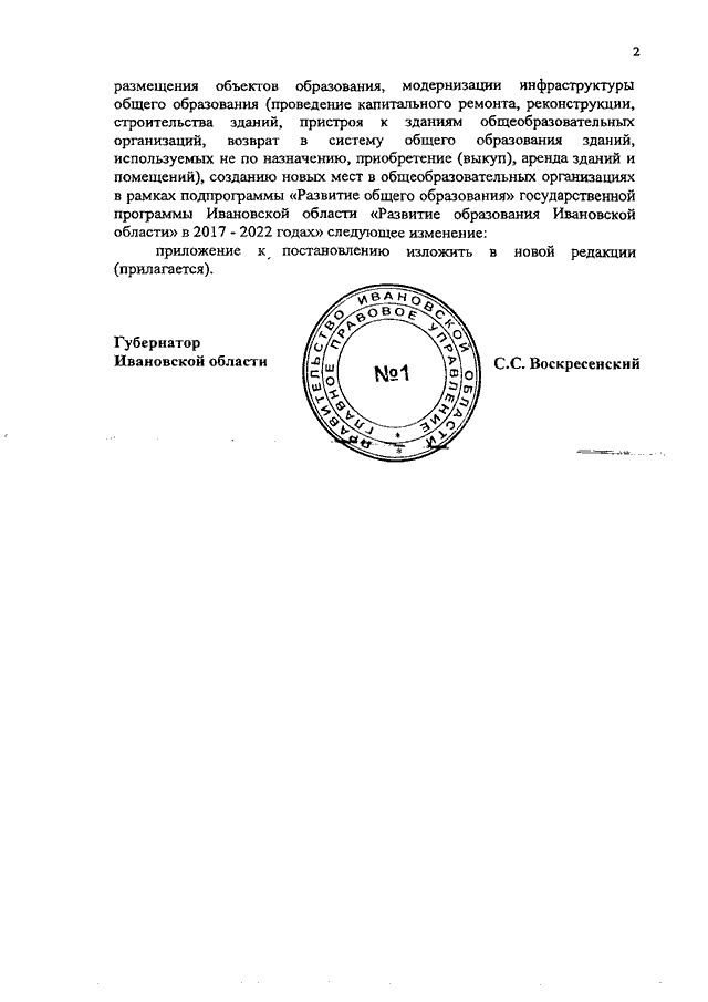 Постановление Правительства Ивановской области от 20.05.2020 N 225-п "О внесении изменения в постановление Правительства Ивановской области от 29.03.2017 N 112-п "О распределении субсидий бюджетам муниципальных образований Ивановской области на реализацию мероприятий по разработке (корректировке) проектной документации, капитальному ремонту, реконструкции, строительству зданий (пристроек к зданиям) образовательных организаций, выкупу помещений для размещения объектов образования, модернизации инфраструктуры общего образования (проведение капитального ремонта, реконструкции, строительства зданий, пристроя к зданиям общеобразовательных организаций, возврат в систему общего образования зданий, используемых не по назначению, приобретение (выкуп), аренда зданий и помещений), созданию новых мест в общеобразовательных организациях в рамках подпрограммы "Развитие общего образования" государственной программы Ивановской области "Развитие образования Ивановской области" в 2017 - 2022 годах"