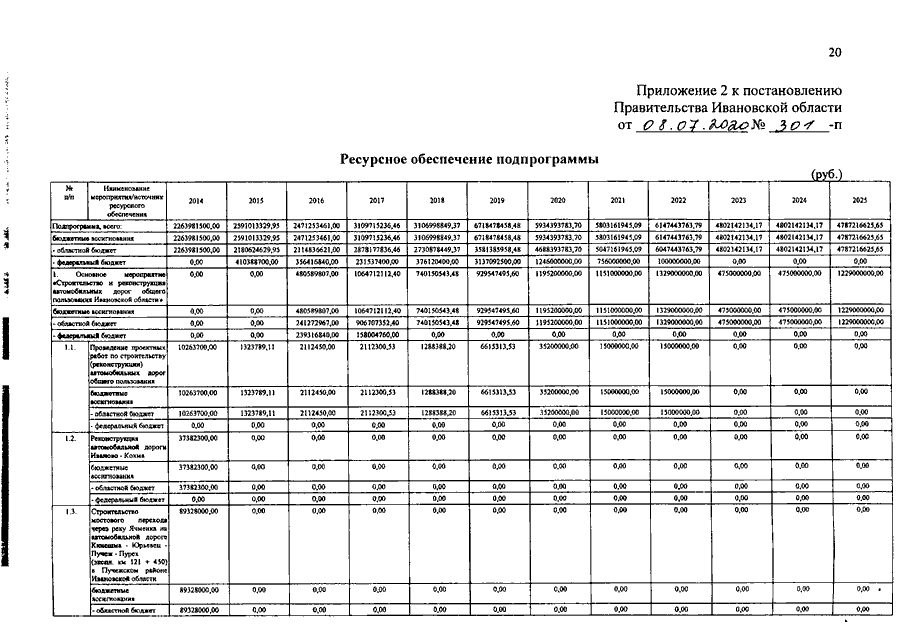 Постановление Правительства Ивановской области от 08.07.2020 N 301-п "О внесении изменений в постановление Правительства Ивановской области от 13.11.2013 N 447-п "Об утверждении государственной программы Ивановской области "Развитие транспортной системы Ивановской области"