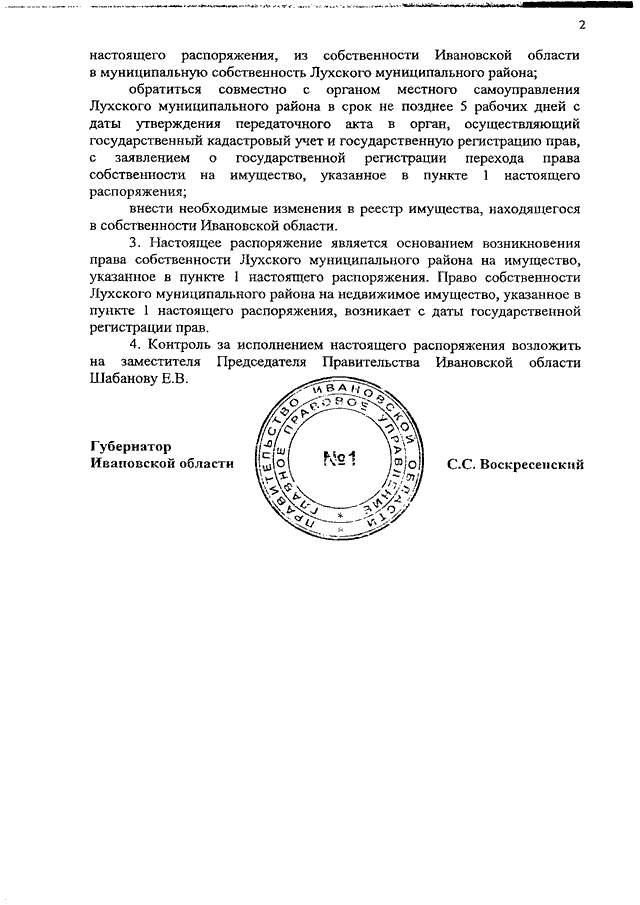 Распоряжение Правительства Ивановской области от 09.07.2020 N 94-рп "О передаче имущества из собственности Ивановской области в муниципальную собственность Лухского муниципального района"