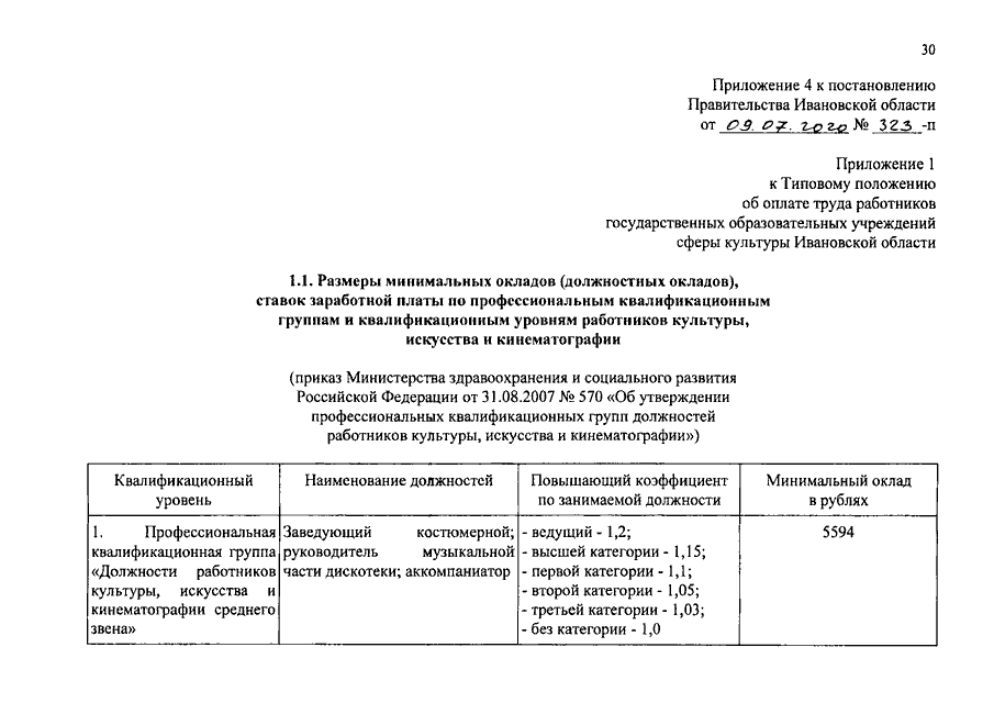 Постановление Правительства Ивановской области от 09.07.2020 N 323-п "О внесении изменений в постановление Правительства Ивановской области от 31.12.2008 N 367-п "О системе оплаты труда работников государственных учреждений Ивановской области, подведомственных Департаменту культуры и туризма Ивановской области"