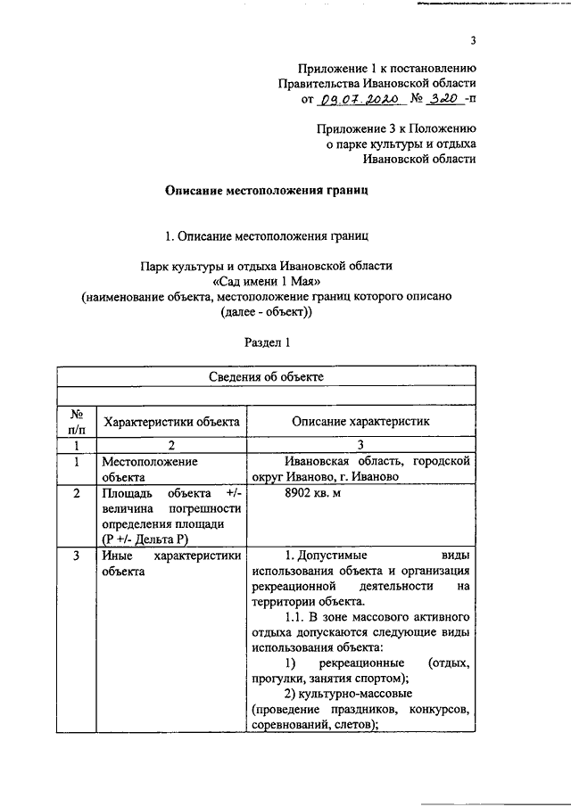 Постановление Правительства Ивановской области от 09.07.2020 N 320-п "О внесении изменений в постановление Правительства Ивановской области от 09.11.2015 N 514-п "О парке культуры и отдыха Ивановской области "Сад имени 1 Мая"