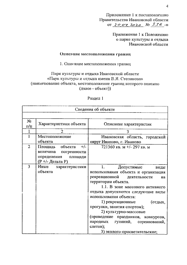 Постановление Правительства Ивановской области от 20.07.2020 N 336-п "О внесении изменений в постановление Правительства Ивановской области от 30.10.2015 N 505-п "О парке культуры и отдыха Ивановской области "Парк культуры и отдыха имени В.Я. Степанова"