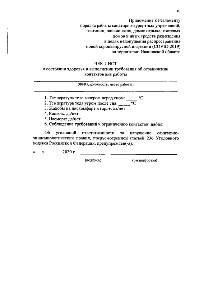 Постановление Правительства Ивановской области от 31.07.2020 N 349-п "О внесении изменений в постановление Правительства Ивановской области от 08.05.2020 N 209-п "Об утверждении регламентов по проведению профилактических мероприятий и дезинфекции в целях недопущения распространения новой коронавирусной инфекции (COVID-2019) на территории Ивановской области" (вместе с "Регламентом порядка работы санаторно-курортных учреждений, гостиниц, пансионатов, домов отдыха, гостевых домов и иных средств размещения в целях недопущения распространения новой коронавирусной инфекции (COVID-2019) на территории Ивановской области")