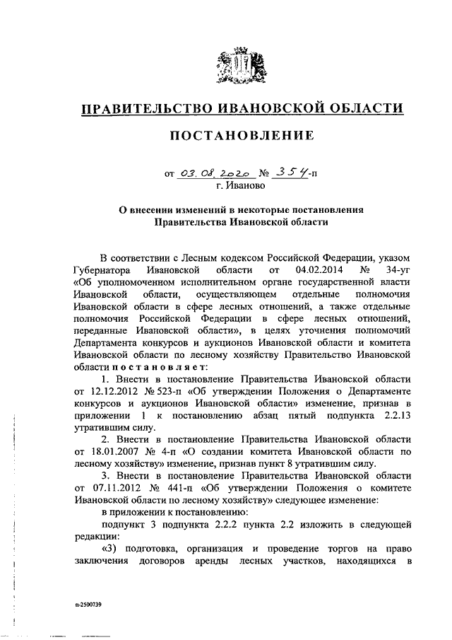 Постановление Правительства Ивановской области от 03.08.2020 N 354-п "О внесении изменений в некоторые постановления Правительства Ивановской области"