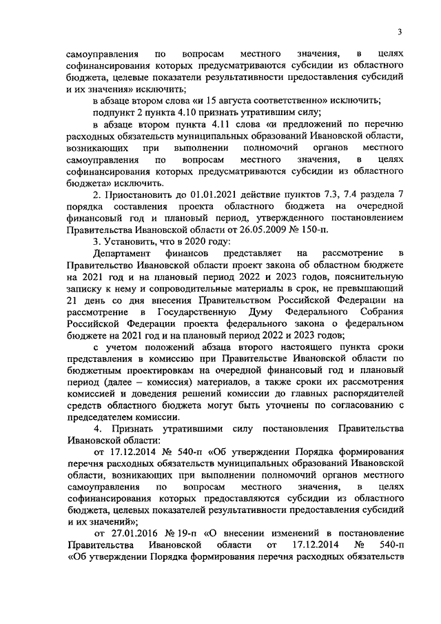 Постановление Правительства Ивановской области от 03.08.2020 N 353-п "О внесении изменений в постановление Правительства Ивановской области от 26.05.2009 N 150-п "О порядке составления проекта областного бюджета на очередной финансовый год и плановый период" и признании утратившими силу некоторых постановлений Правительства Ивановской области"