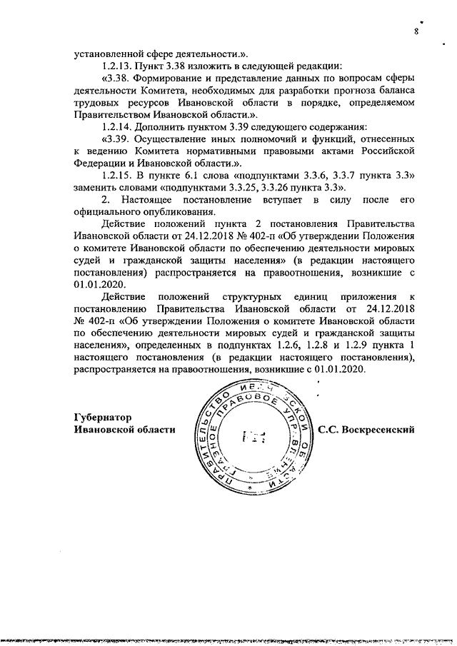 Постановление Правительства Ивановской области от 03.08.2020 N 351-п "О внесении изменений в постановление Правительства Ивановской области от 24.12.2018 N 402-п "Об утверждении Положения о комитете Ивановской области по обеспечению деятельности мировых судей и гражданской защиты населения"
