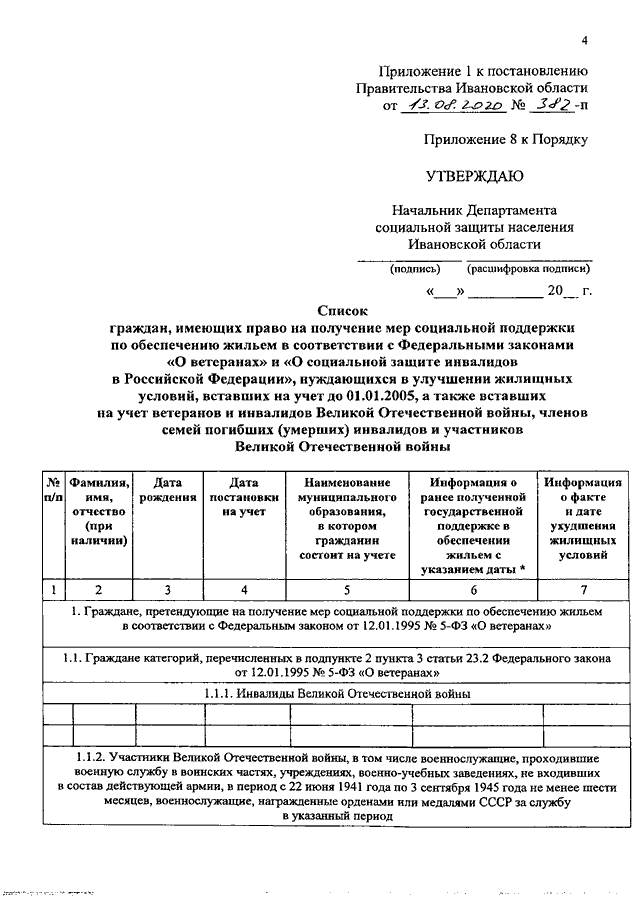 Постановление Правительства Ивановской области от 13.08.2020 N 382-п "О внесении изменений в постановление Правительства Ивановской области от 15.04.2015 N 138-п "Об утверждении Порядка предоставления отдельным категориям граждан жилого помещения в собственность, а также единовременной денежной выплаты на строительство или приобретение жилого помещения за счет средств федерального бюджета"