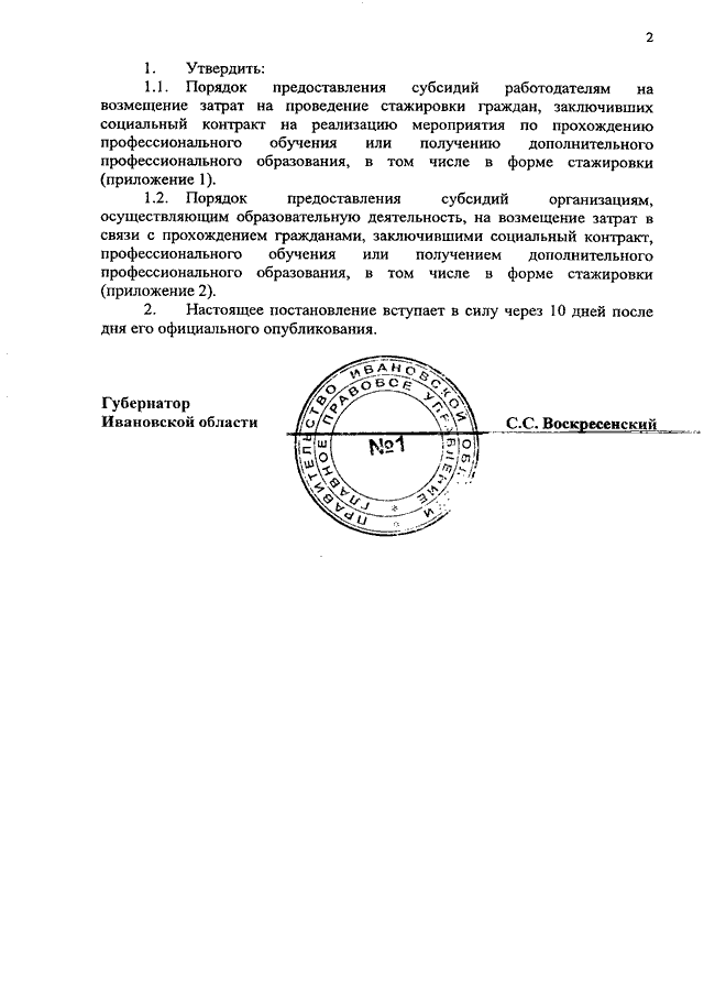 Постановление Правительства Ивановской области от 13.08.2020 N 375-п "Об утверждении Порядка предоставления субсидий работодателям на возмещение затрат на проведение стажировки граждан, заключивших социальный контракт на реализацию мероприятия по прохождению профессионального обучения или получению дополнительного профессионального образования, в том числе в форме стажировки, Порядка предоставления субсидий организациям, осуществляющим образовательную деятельность, на возмещение затрат в связи с прохождением гражданами, заключившими социальный контракт, профессионального обучения или получением дополнительного профессионального образования, в том числе в форме стажировки"
