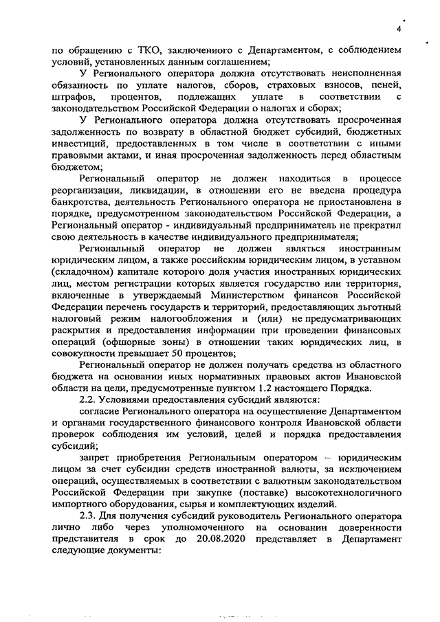 Постановление Правительства Ивановской области от 13.08.2020 N 360-п "Об утверждении Порядка предоставления субсидий юридическим лицам на финансовое обеспечение расходов, связанных с обеспечением непрерывной работы региональных операторов по обращению с твердыми коммунальными отходами"