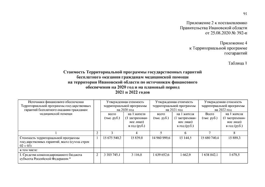 Постановление Правительства Ивановской области от 25.08.2020 N 392-п "О внесении изменений в постановление Правительства Ивановской области от 31.12.2019 N 560-п "Об утверждении Территориальной программы государственных гарантий бесплатного оказания гражданам медицинской помощи на территории Ивановской области на 2020 год и на плановый период 2021 и 2022 годов"