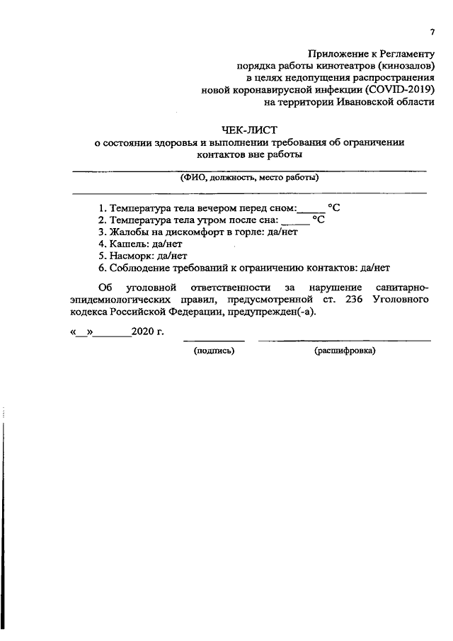 Постановление Правительства Ивановской области от 28.08.2020 N 397-п "О внесении изменений в постановление Правительства Ивановской области от 08.05.2020 N 209-п "Об утверждении регламентов по проведению профилактических мероприятий и дезинфекции в целях недопущения распространения новой коронавирусной инфекции (COVID-2019) на территории Ивановской области" (вместе с "Регламентом порядка работы кинотеатров (кинозалов) в целях недопущения распространения новой коронавирусной инфекции (COVID-2019) на территории Ивановской области")