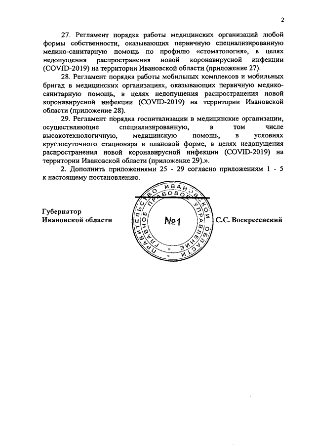 Постановление Правительства Ивановской области от 04.09.2020 N 403-п "О внесении изменений в постановление Правительства Ивановской области от 08.05.2020 N 209-п "Об утверждении регламентов по проведению профилактических мероприятий и дезинфекции в целях недопущения распространения новой коронавирусной инфекции (COVID-2019) на территории Ивановской области" (вместе с "Регламентом порядка работы медицинских организаций любой формы собственности, оказывающих первичную медико-санитарную помощь взрослому населению, в целях недопущения распространения новой коронавирусной инфекции (COVID-2019) на территории Ивановской области", "Регламентом порядка работы медицинских организаций любой формы собственности, оказывающих первичную медико-санитарную помощь детскому населению, в целях недопущения распространения новой коронавирусной инфекции (COVID-2019) на территории Ивановской области", "Регламентом порядка работы медицинских организаций любой формы собственности, оказывающих первичную специализированную медико-санитарную помощь по профилю "стоматология", в целях недопущения распространения новой коронавирусной инфекции (COVID-2019) на территории Ивановской области", "Регламентом порядка работы мобильных комплексов и мобильных бригад в медицинских организациях любой формы собственности, оказывающих первичную медико-санитарную помощь, в целях недопущения распространения новой коронавирусной инфекции (COVID-2019) на территории Ивановской области", "Регламентом порядка госпитализации в медицинские организации любой формы собственности, осуществляющие специализированную, в том числе высокотехнологичную, медицинскую помощь, в условиях круглосуточного стационара в плановой форме, в целях недопущения распространения новой коронавирусной инфекции (COVID-2019) на территории Ивановской области")