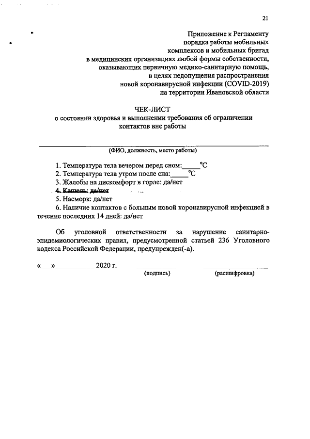 Постановление Правительства Ивановской области от 04.09.2020 N 403-п "О внесении изменений в постановление Правительства Ивановской области от 08.05.2020 N 209-п "Об утверждении регламентов по проведению профилактических мероприятий и дезинфекции в целях недопущения распространения новой коронавирусной инфекции (COVID-2019) на территории Ивановской области" (вместе с "Регламентом порядка работы медицинских организаций любой формы собственности, оказывающих первичную медико-санитарную помощь взрослому населению, в целях недопущения распространения новой коронавирусной инфекции (COVID-2019) на территории Ивановской области", "Регламентом порядка работы медицинских организаций любой формы собственности, оказывающих первичную медико-санитарную помощь детскому населению, в целях недопущения распространения новой коронавирусной инфекции (COVID-2019) на территории Ивановской области", "Регламентом порядка работы медицинских организаций любой формы собственности, оказывающих первичную специализированную медико-санитарную помощь по профилю "стоматология", в целях недопущения распространения новой коронавирусной инфекции (COVID-2019) на территории Ивановской области", "Регламентом порядка работы мобильных комплексов и мобильных бригад в медицинских организациях любой формы собственности, оказывающих первичную медико-санитарную помощь, в целях недопущения распространения новой коронавирусной инфекции (COVID-2019) на территории Ивановской области", "Регламентом порядка госпитализации в медицинские организации любой формы собственности, осуществляющие специализированную, в том числе высокотехнологичную, медицинскую помощь, в условиях круглосуточного стационара в плановой форме, в целях недопущения распространения новой коронавирусной инфекции (COVID-2019) на территории Ивановской области")
