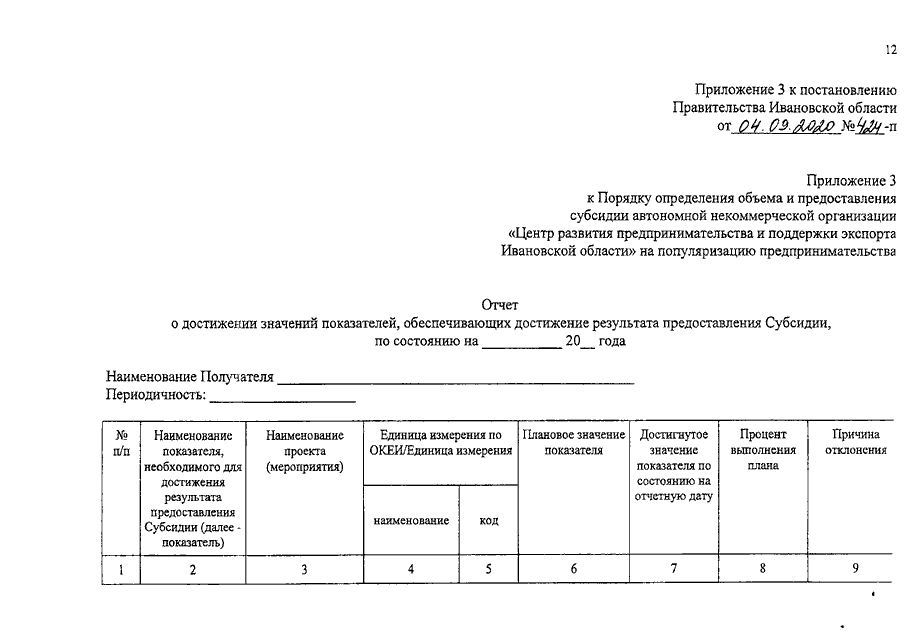 Постановление Правительства Ивановской области от 04.09.2020 N 424-п "О внесении изменений в постановление Правительства Ивановской области от 25.02.2019 N 53-п "Об утверждении Порядка определения объема и предоставления субсидии автономной некоммерческой организации "Центр развития предпринимательства и поддержки экспорта Ивановской области" на популяризацию предпринимательства"