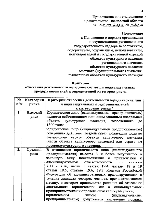 Постановление Правительства Ивановской области от 04.09.2020 N 420-п "О внесении изменений в постановление Правительства Ивановской области от 03.08.2016 N 245-п "О региональном государственном надзоре в области охраны объектов культурного наследия"