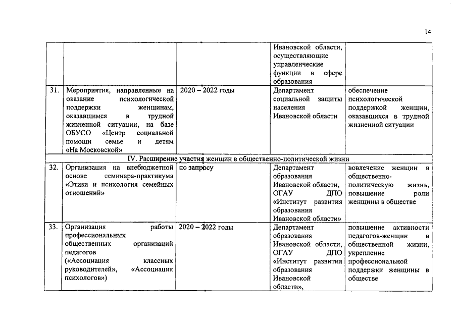Распоряжение Правительства Ивановской области от 21.09.2020 N 118-рп "Об утверждении Плана мероприятий по реализации в 2020 - 2022 годах Национальной стратегии действий в интересах женщин на 2017 - 2022 годы в Ивановской области"