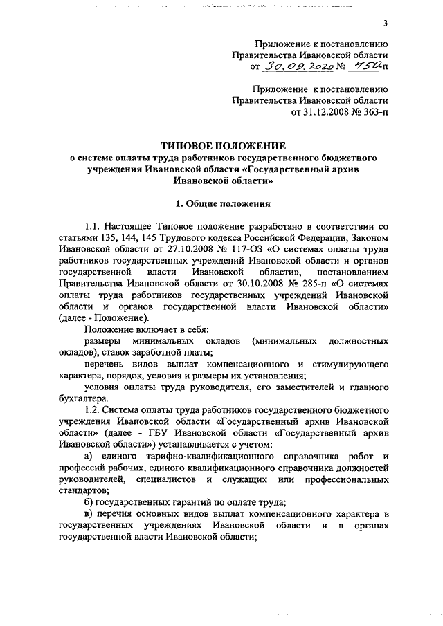 Постановление Правительства Ивановской области от 30.09.2020 N 450-п "О внесении изменений в постановление Правительства Ивановской области от 31.12.2008 N 363-п "О системе оплаты труда работников государственного бюджетного учреждения Ивановской области "Государственный архив Ивановской области" (вместе с "Типовым положением о системе оплаты труда работников государственного бюджетного учреждения Ивановской области "Государственный архив Ивановской области")