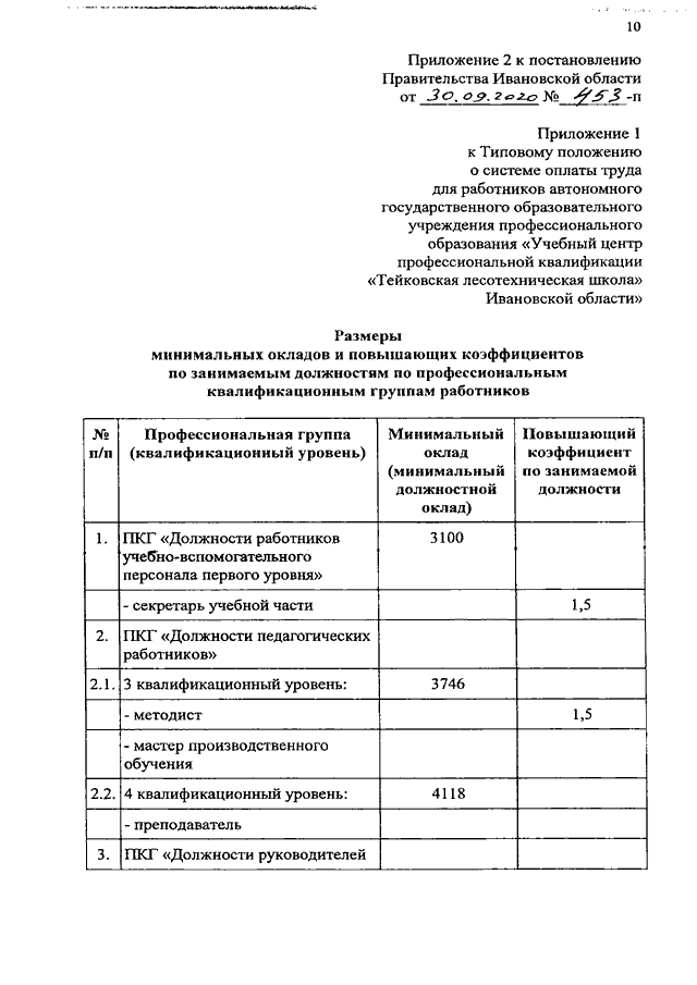 Постановление Правительства Ивановской области от 30.09.2020 N 453-п "О внесении изменений в постановление Правительства Ивановской области от 31.12.2008 N 365-п "О системе оплаты труда работников автономных государственных учреждений Ивановской области и областных государственных казенных учреждений, подведомственных комитету Ивановской области по лесному хозяйству"