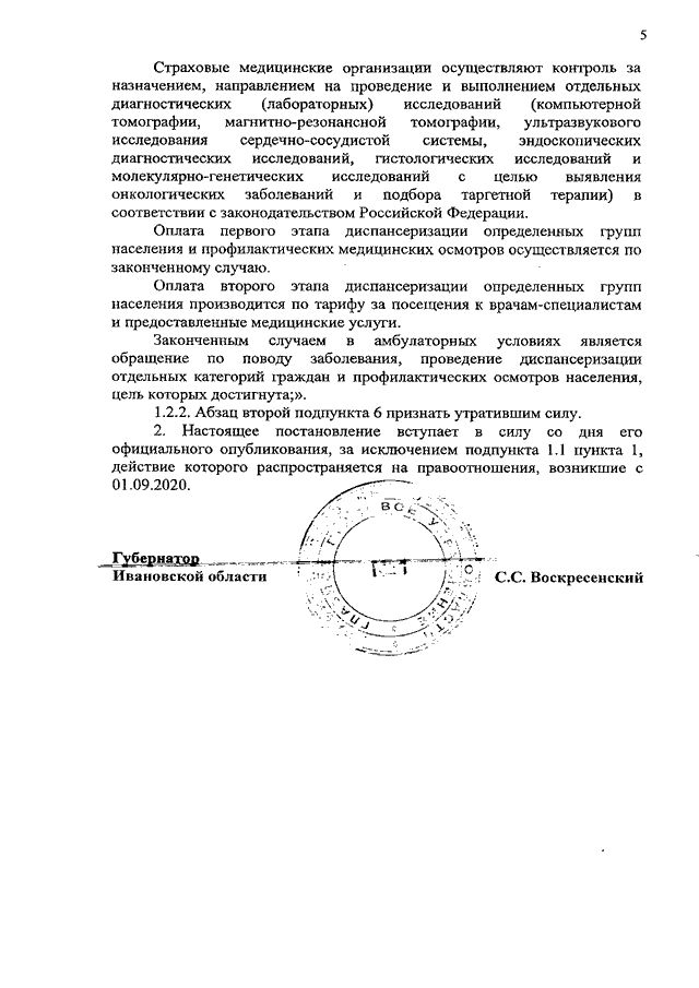 Постановление Правительства Ивановской области от 30.09.2020 N 454-п "О внесении изменений в постановление Правительства Ивановской области от 31.12.2019 N 560-п "Об утверждении Территориальной программы государственных гарантий бесплатного оказания гражданам медицинской помощи на территории Ивановской области на 2020 год и на плановый период 2021 и 2022 годов"