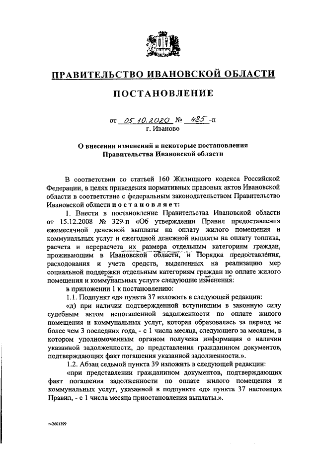 Постановление Правительства Ивановской области от 05.10.2020 N 485-п "О внесении изменений в некоторые постановления Правительства Ивановской области"