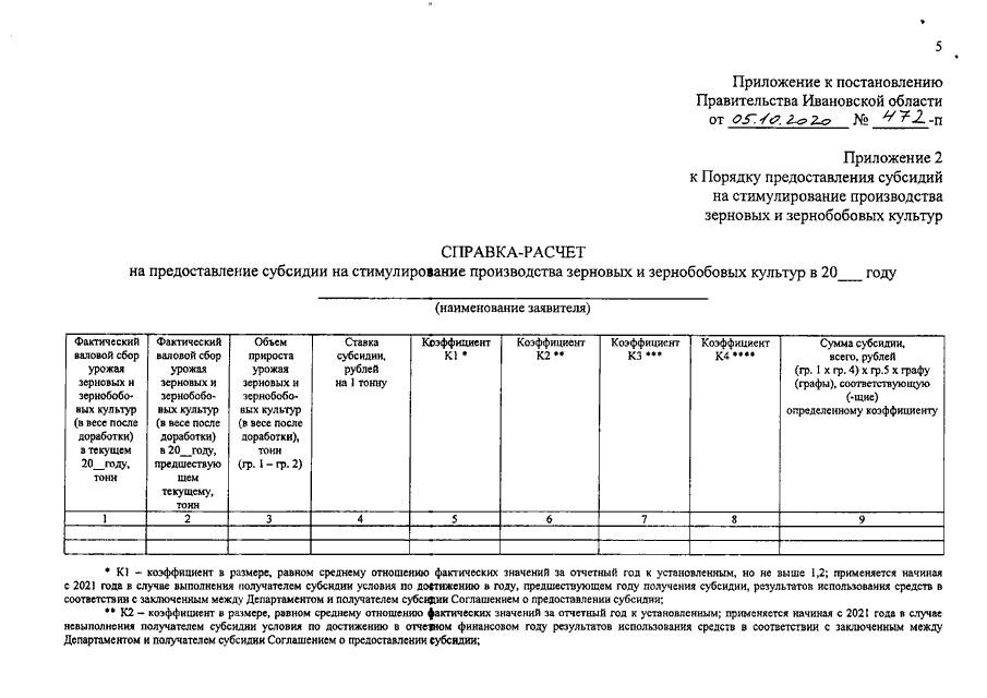 Постановление Правительства Ивановской области от 05.10.2020 N 472-п "О внесении изменений в постановление Правительства Ивановской области от 16.12.2019 N 516-п "Об утверждении Порядка предоставления субсидий на стимулирование производства зерновых и зернобобовых культур"