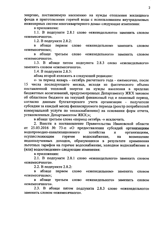 Постановление Правительства Ивановской области от 05.10.2020 N 471-п "О внесении изменений в постановления Правительства Ивановской области от 22.05.2015 N 211-п "О предоставлении субсидий теплоснабжающим организациям на возмещение недополученных доходов от разницы между утвержденными тарифами на тепловую энергию, поставляемую потребителям, и утвержденными льготными тарифами на тепловую энергию, поставляемую населению на нужды отопления жилищного фонда и приготовления горячей воды с использованием внутридомовых инженерных систем многоквартирного дома" и от 25.03.2016 N 73-п "О предоставлении субсидий организациям водопроводно-канализационного хозяйства и организациям, осуществляющим горячее водоснабжение, на возмещение недополученных доходов, образующихся в результате применения льготных тарифов на горячее водоснабжение, холодное водоснабжение и (или) водоотведение"
