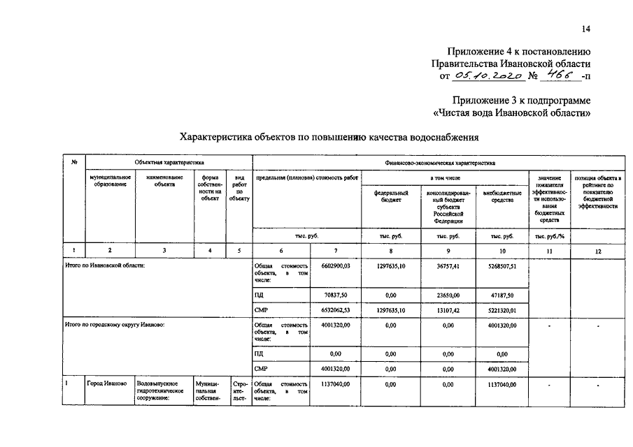 Постановление Правительства Ивановской области от 05.10.2020 N 466-п "О внесении изменений в постановление Правительства Ивановской области от 06.12.2017 N 458-п "Об утверждении государственной программы Ивановской области "Обеспечение услугами жилищно-коммунального хозяйства населения Ивановской области" (вместе с "Порядком предоставления и распределения субсидий бюджетам муниципальных образований Ивановской области на возмещение затрат (части затрат) на выплату платы концедента по концессионным соглашениям, заключенным на строительство и (или) реконструкцию объектов питьевого водоснабжения")