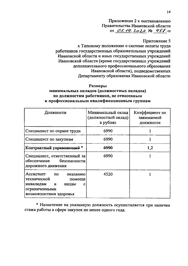Постановление Правительства Ивановской области от 05.10.2020 N 458-п "О внесении изменений в постановление Правительства Ивановской области от 31.12.2008 N 371-п "О системе оплаты труда работников государственных учреждений Ивановской области, подведомственных Департаменту образования Ивановской области"