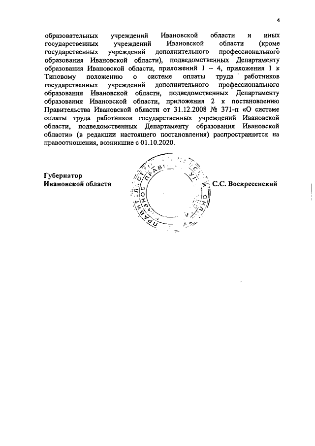 Постановление Правительства Ивановской области от 05.10.2020 N 458-п "О внесении изменений в постановление Правительства Ивановской области от 31.12.2008 N 371-п "О системе оплаты труда работников государственных учреждений Ивановской области, подведомственных Департаменту образования Ивановской области"