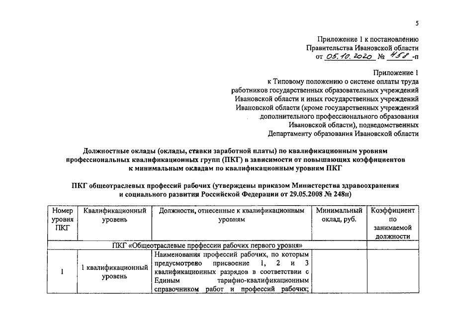 Постановление Правительства Ивановской области от 05.10.2020 N 458-п "О внесении изменений в постановление Правительства Ивановской области от 31.12.2008 N 371-п "О системе оплаты труда работников государственных учреждений Ивановской области, подведомственных Департаменту образования Ивановской области"